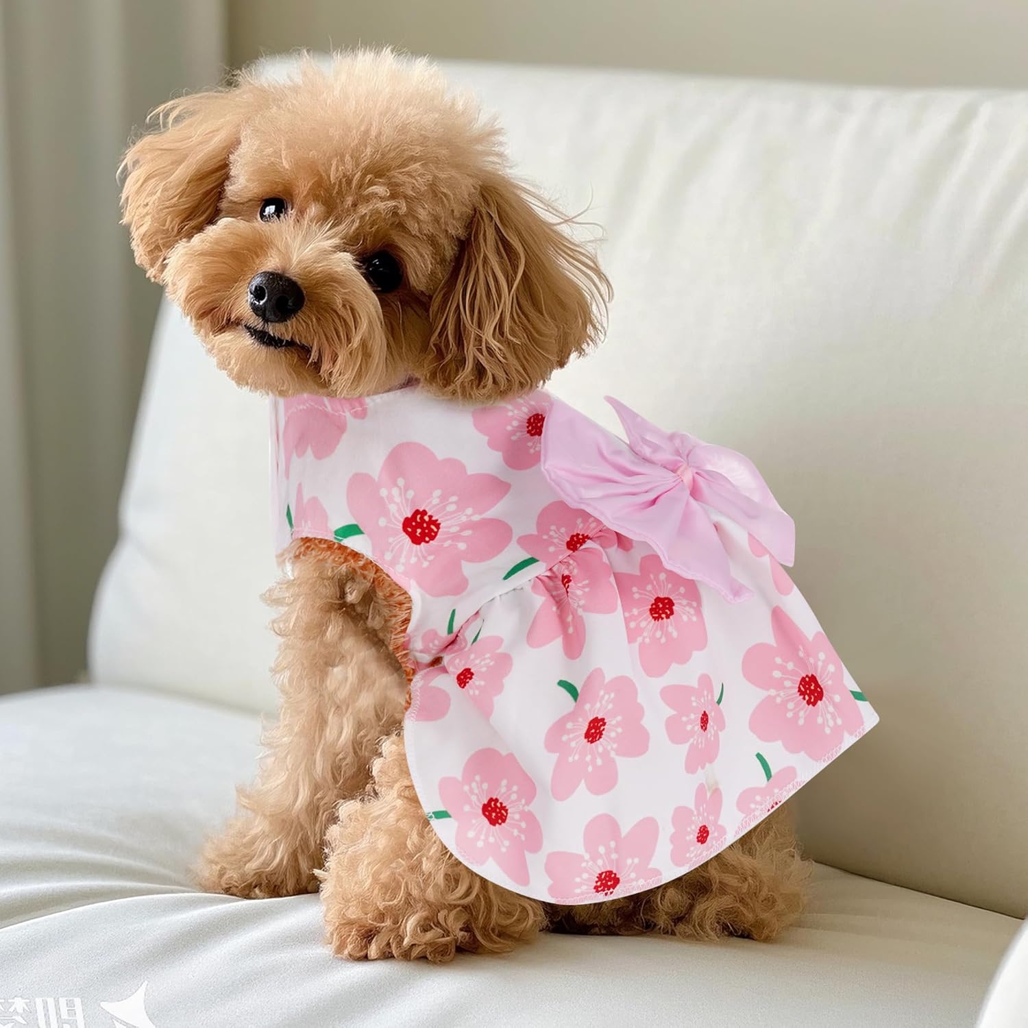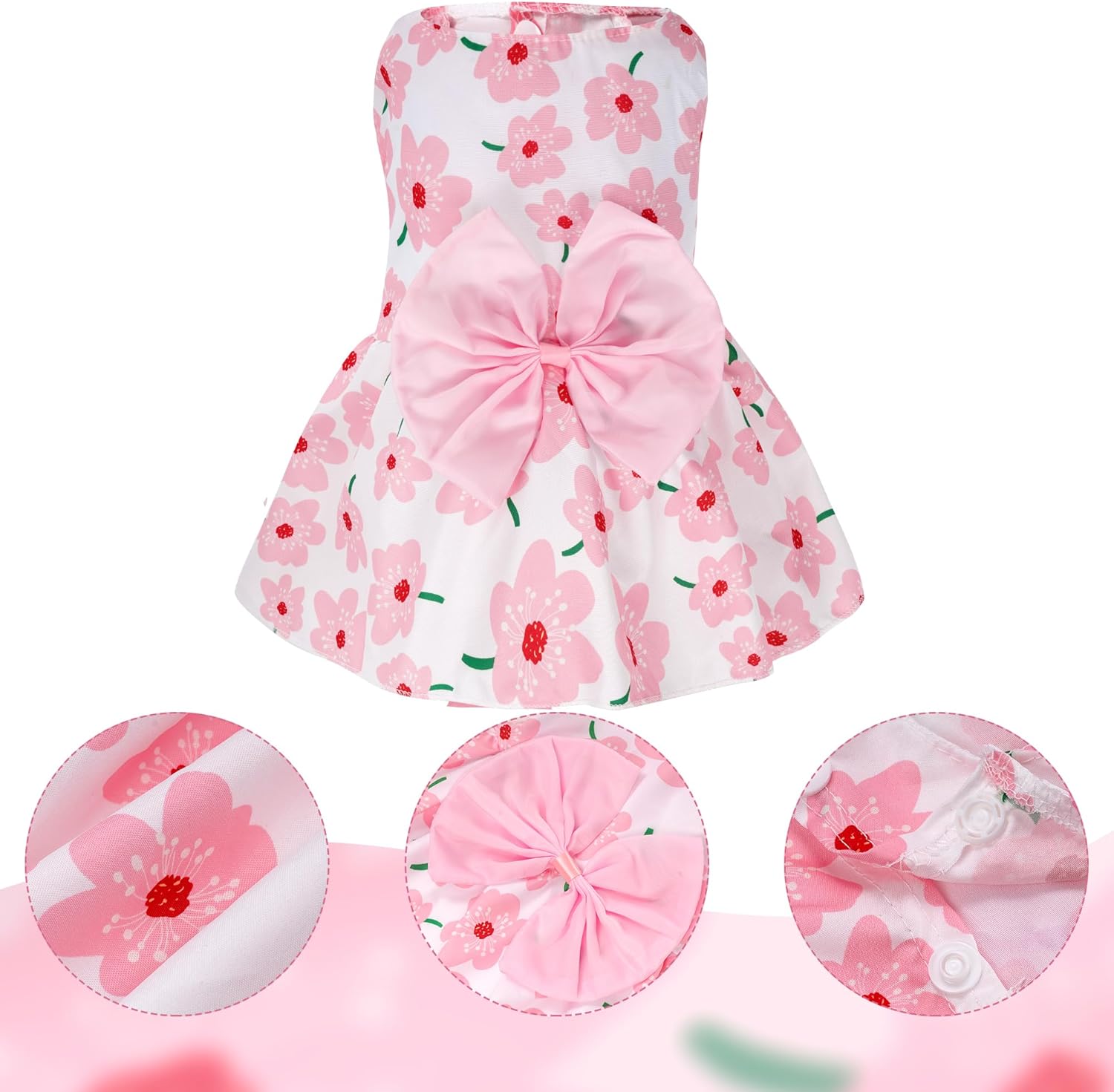 Colour: Fresh pink is the main colour, giving people a sense of tranquility and coolness. The dress is also embellished with a flower pattern, like a summer garden blooming flowers, full of life and vitality, to create a sweet and lovely image for the dog