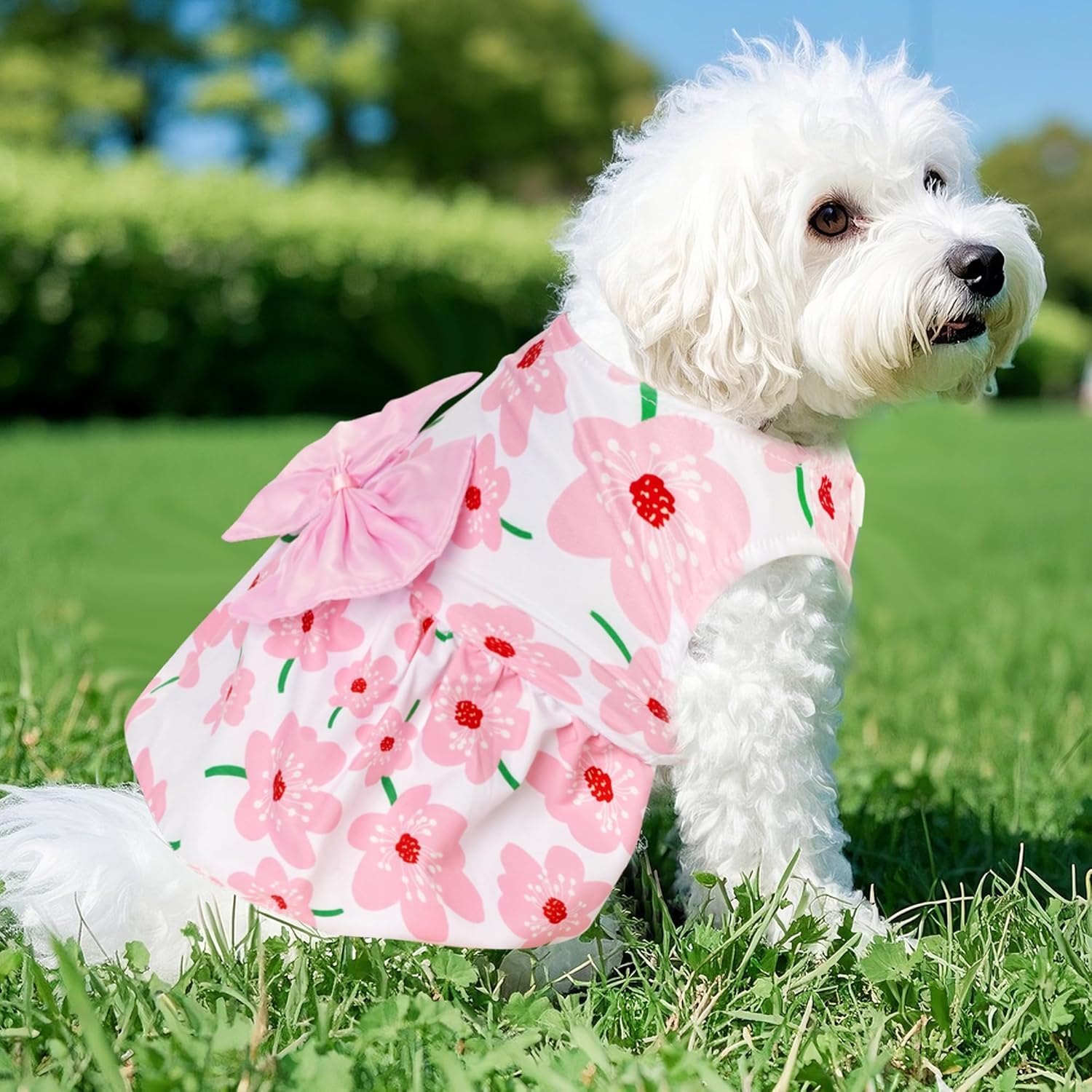 Classic Style: This dog summer dress is a classic vest dress style, simple and generous, can be perfectly adapted to all kinds of dog size. The hemline is slightly spread out, not only free to move freely, but also full of dynamic beauty when running, adding a lively atmosphere for the dog