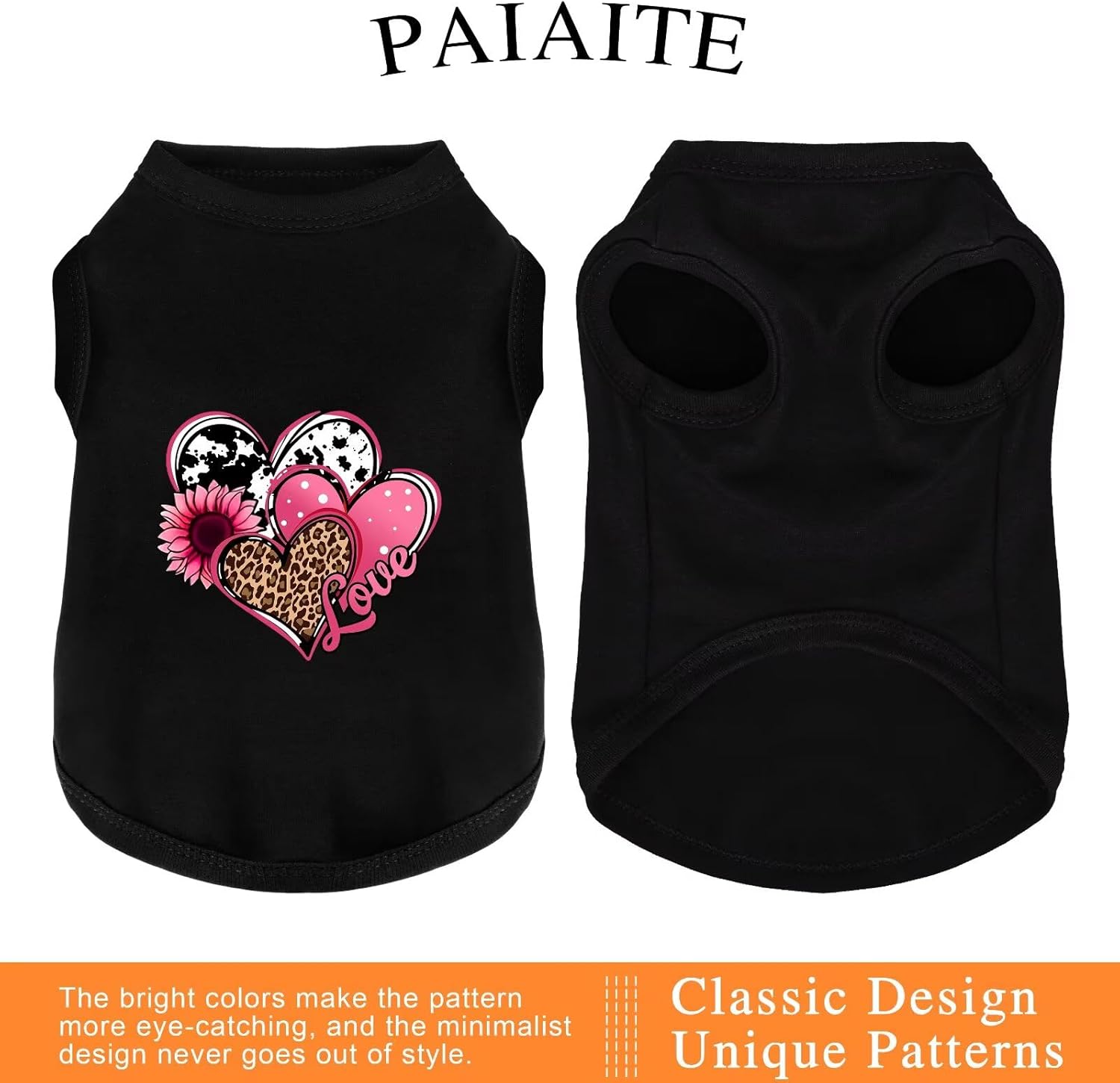 Discover Cozy Cotton Canine Wear: Soft, Lightweight, and Breathable Dog Shirt Vest with Eye-Catching Graphics (Hearts and Love), Keeping Your Furry Friend Comfy! Black S