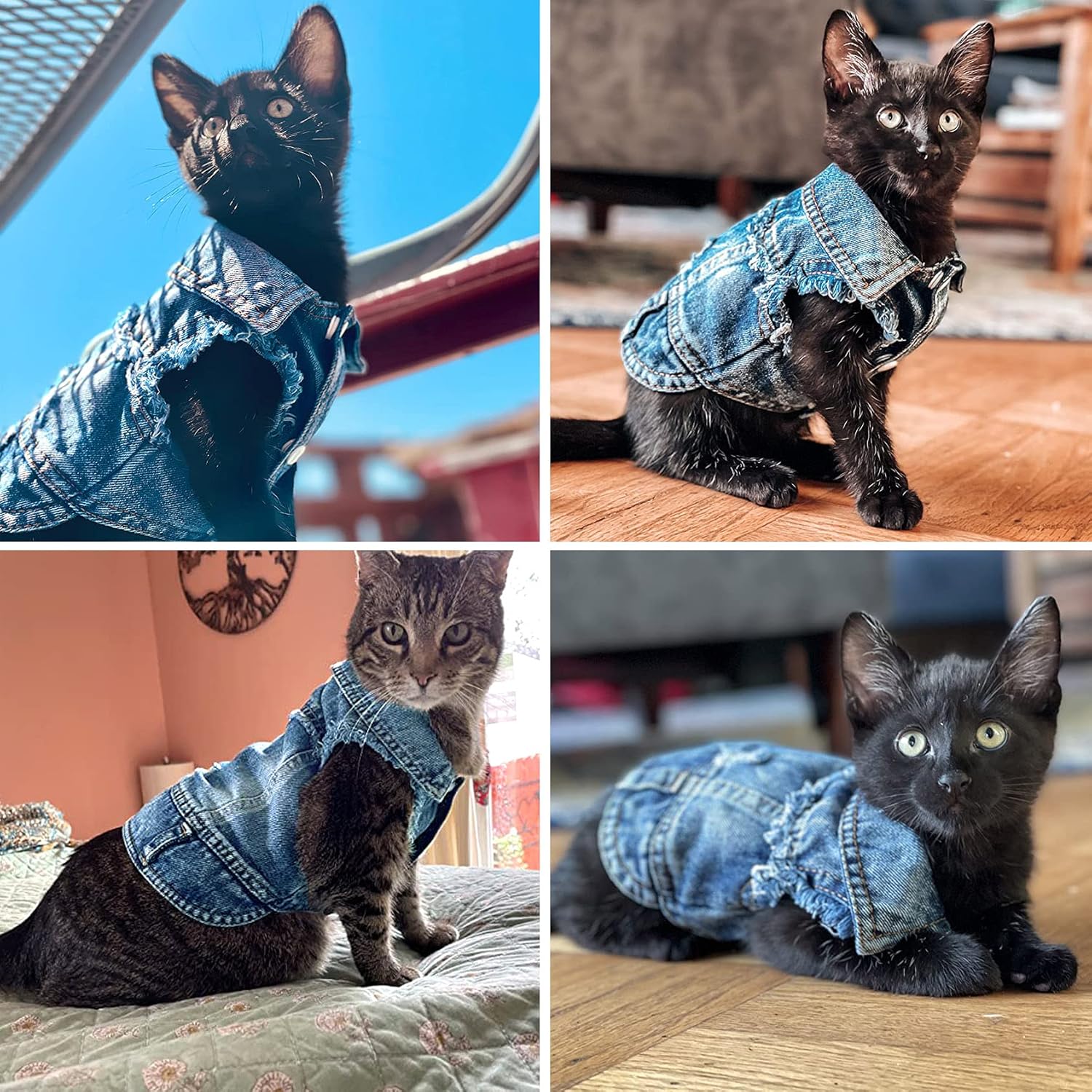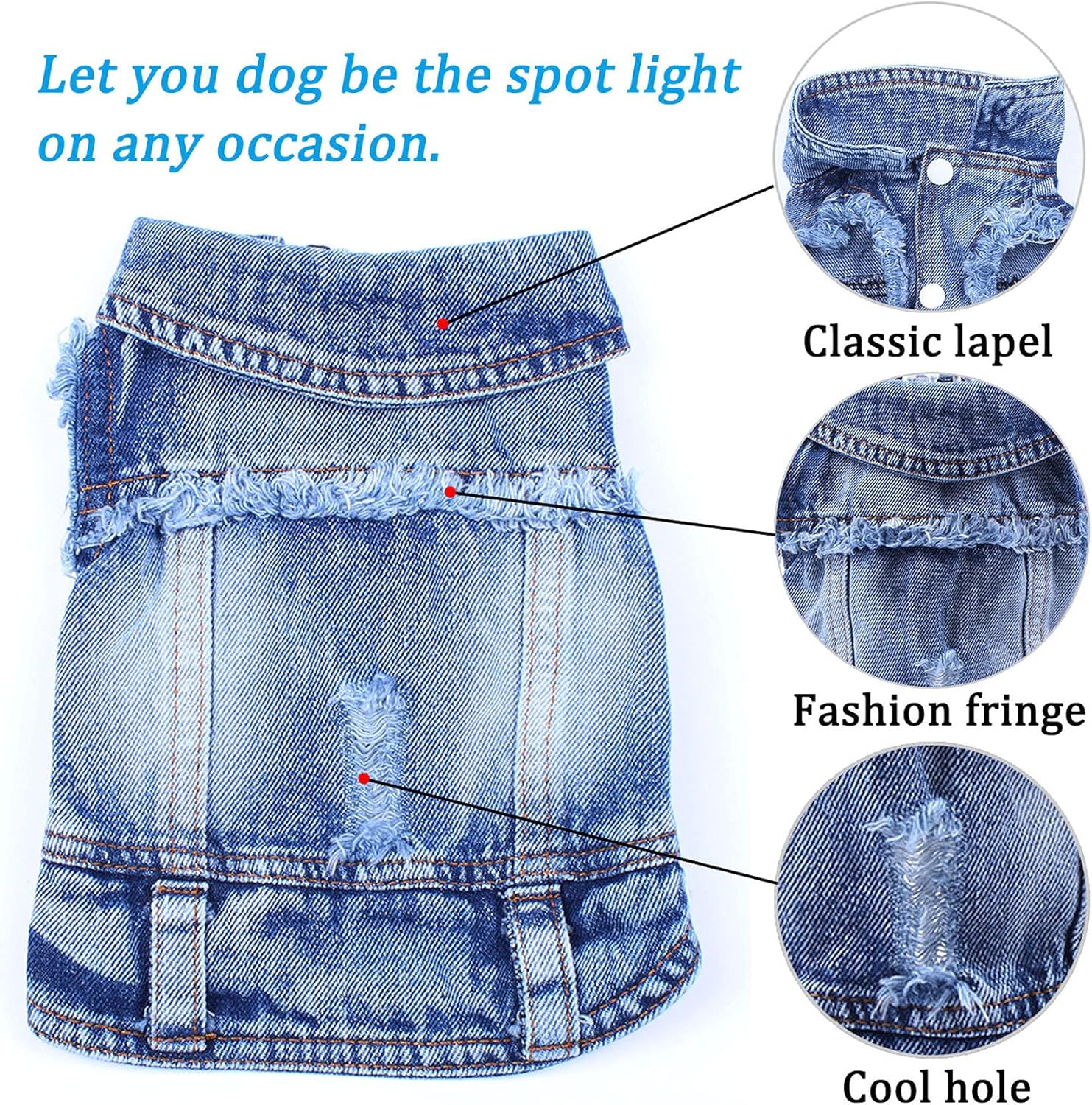 ✅【Dog Jean Jacket Material】: Denim Fabric, durable soft and comfortable dog clothes, your pets will love dog jeans!