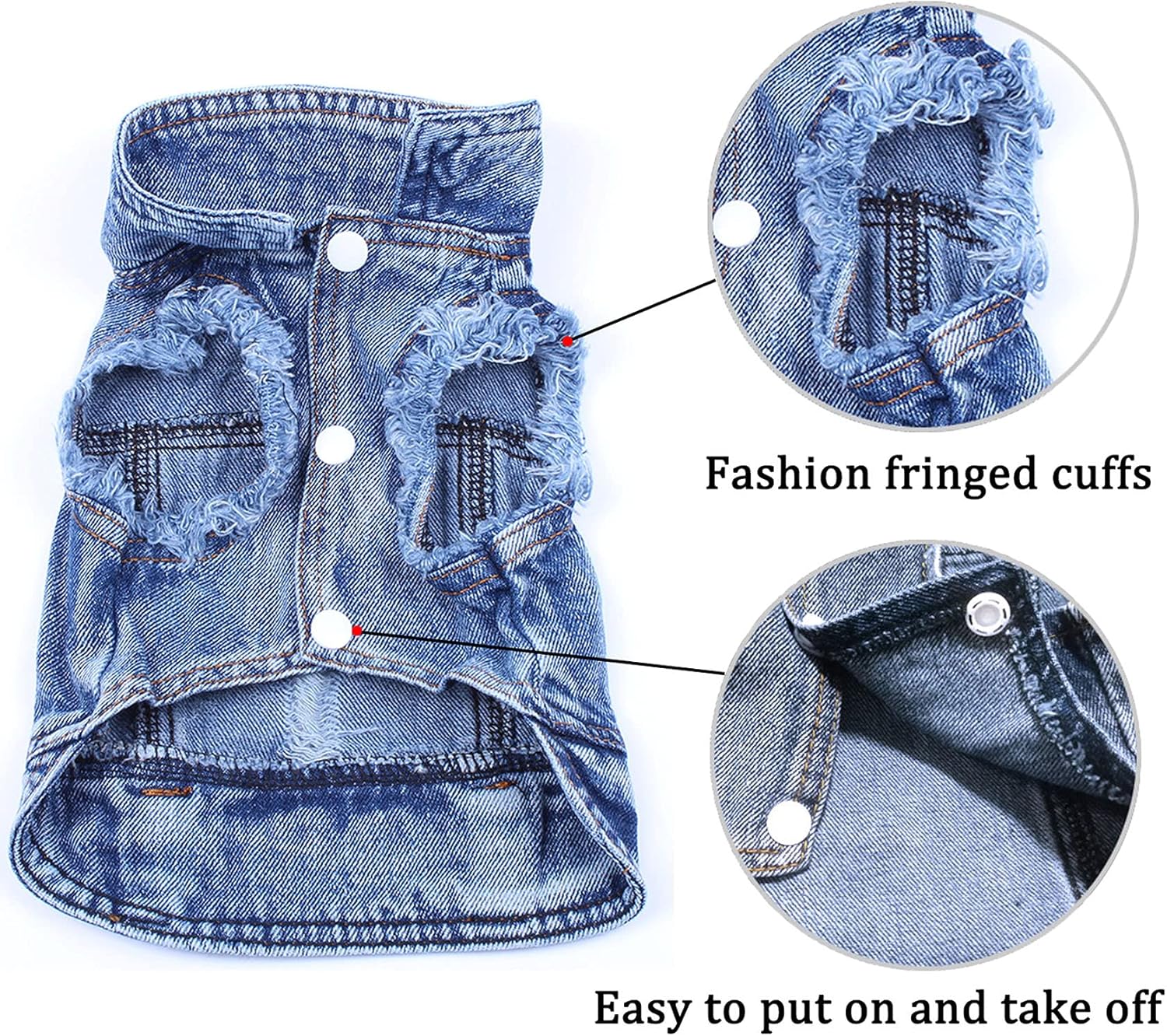 ✅【Fashion Style】: Button Snaps Design – easy put on and take off dog jean jacket. Classic Lapel Vests – It will be of very fashionable!