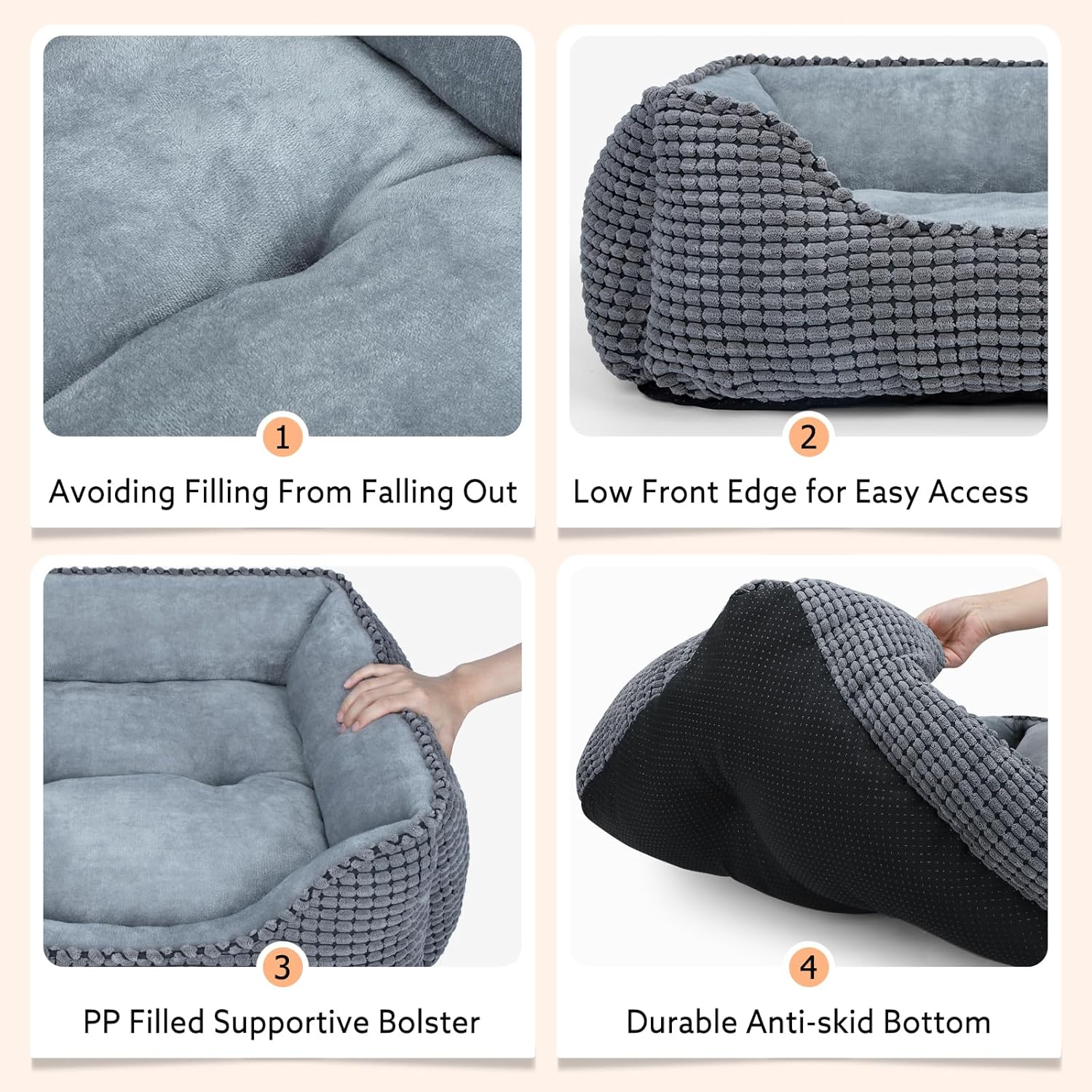MIXJOY Dog Bed for Large Medium Small Dogs, Rectangle Washable Sleeping Puppy Bed, Soft Calming Cat Beds for Indoor Cats, Orthopedic Pet Sofa Bed, Anti-Slip Bottom with Multiple Size (20”, Grey)