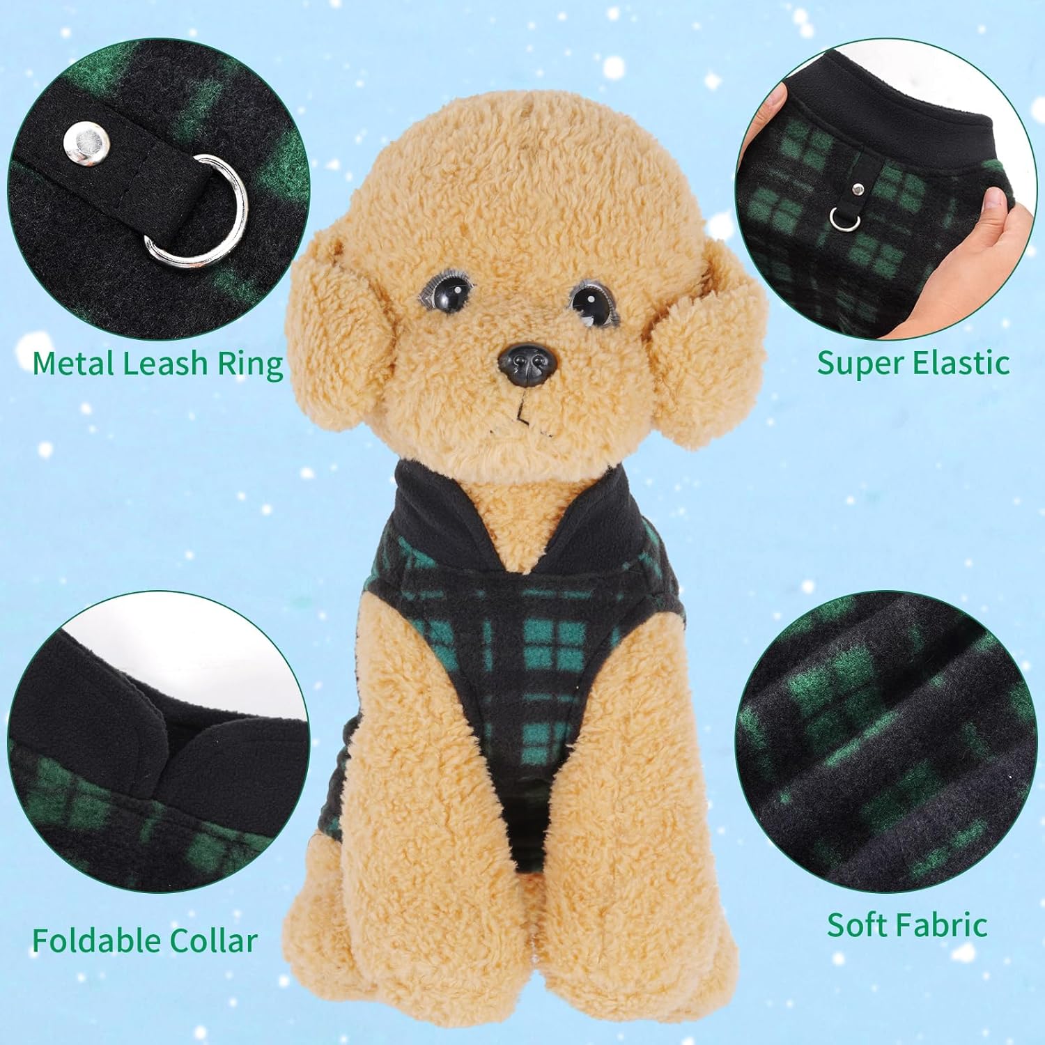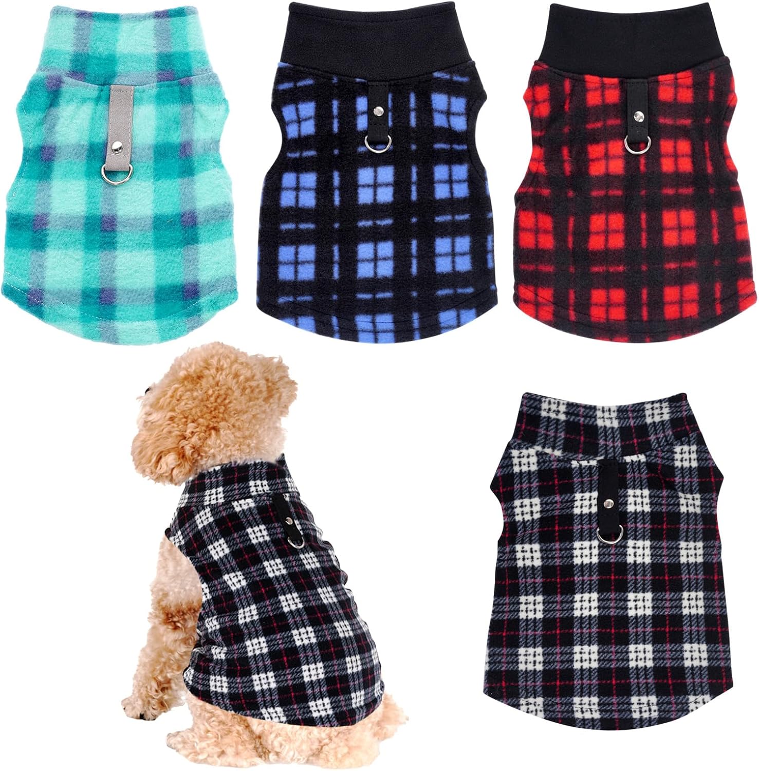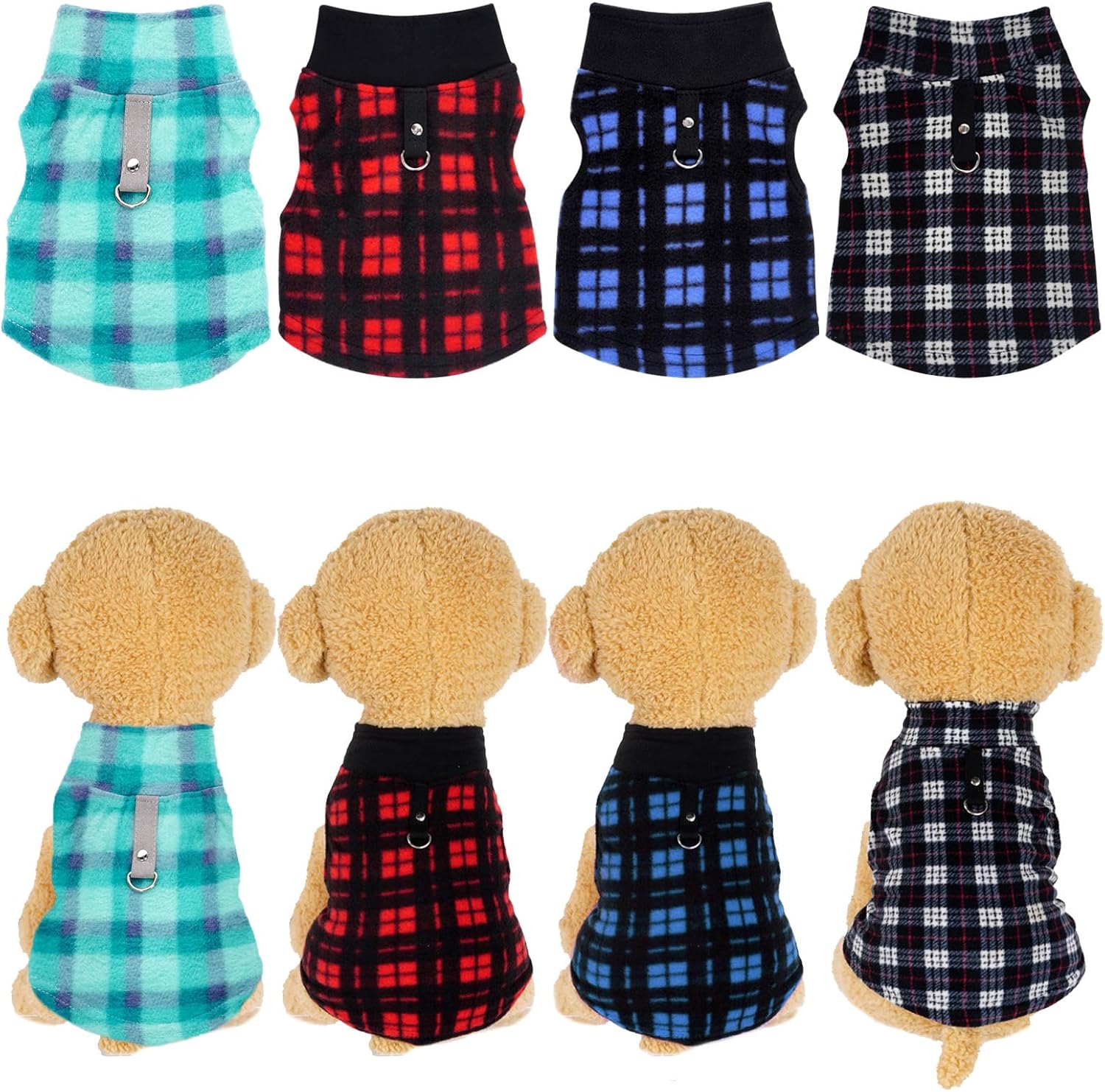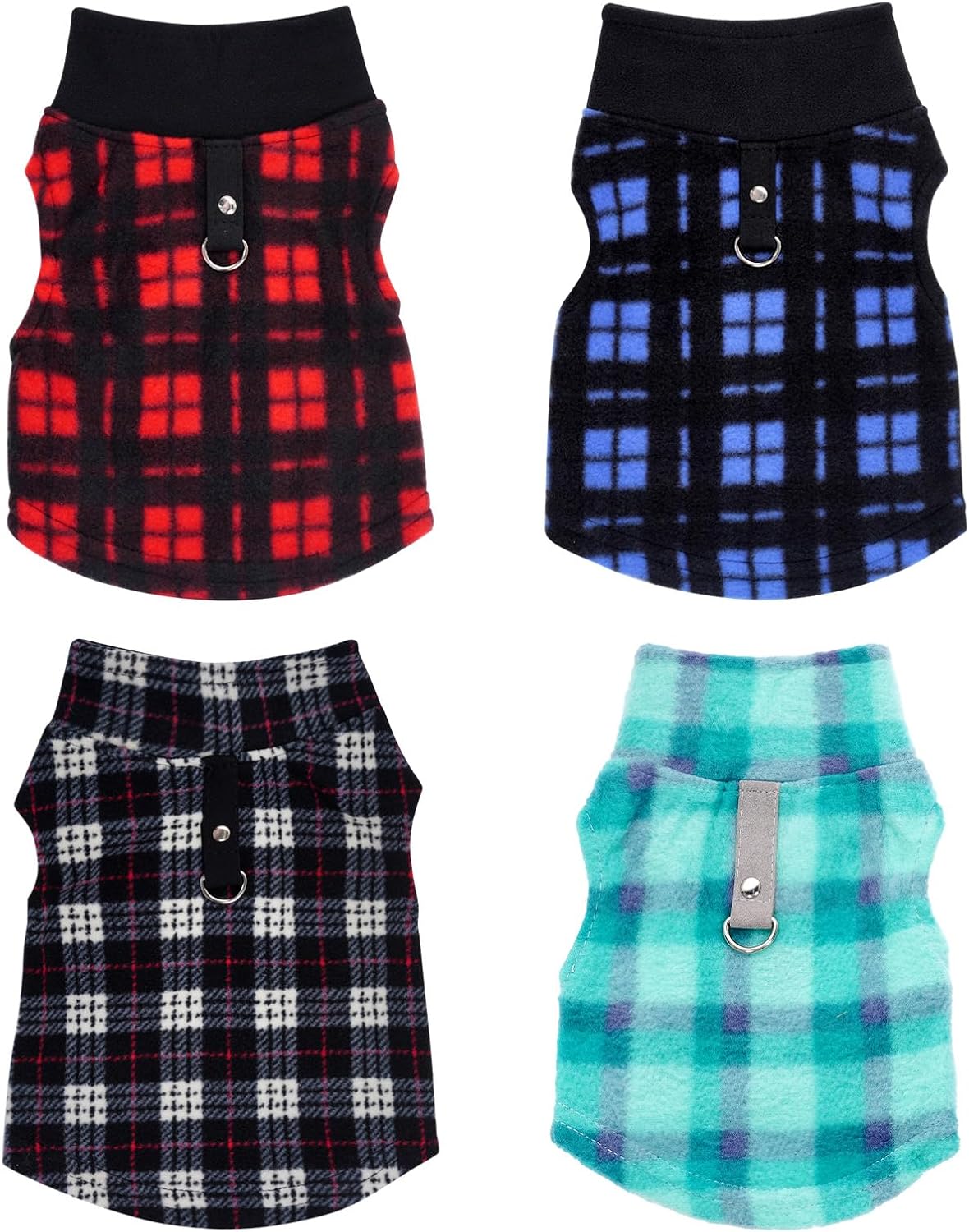 Package Included — You will receive 4 pieces of buffalo plaid dog fleece vest sweaters with leash ring in different patterns, sufficient quantity and lovely pattern design can meet your dog’s daily wear demands and replacement needs, making your pet look more attractive, and you can also share it with others.