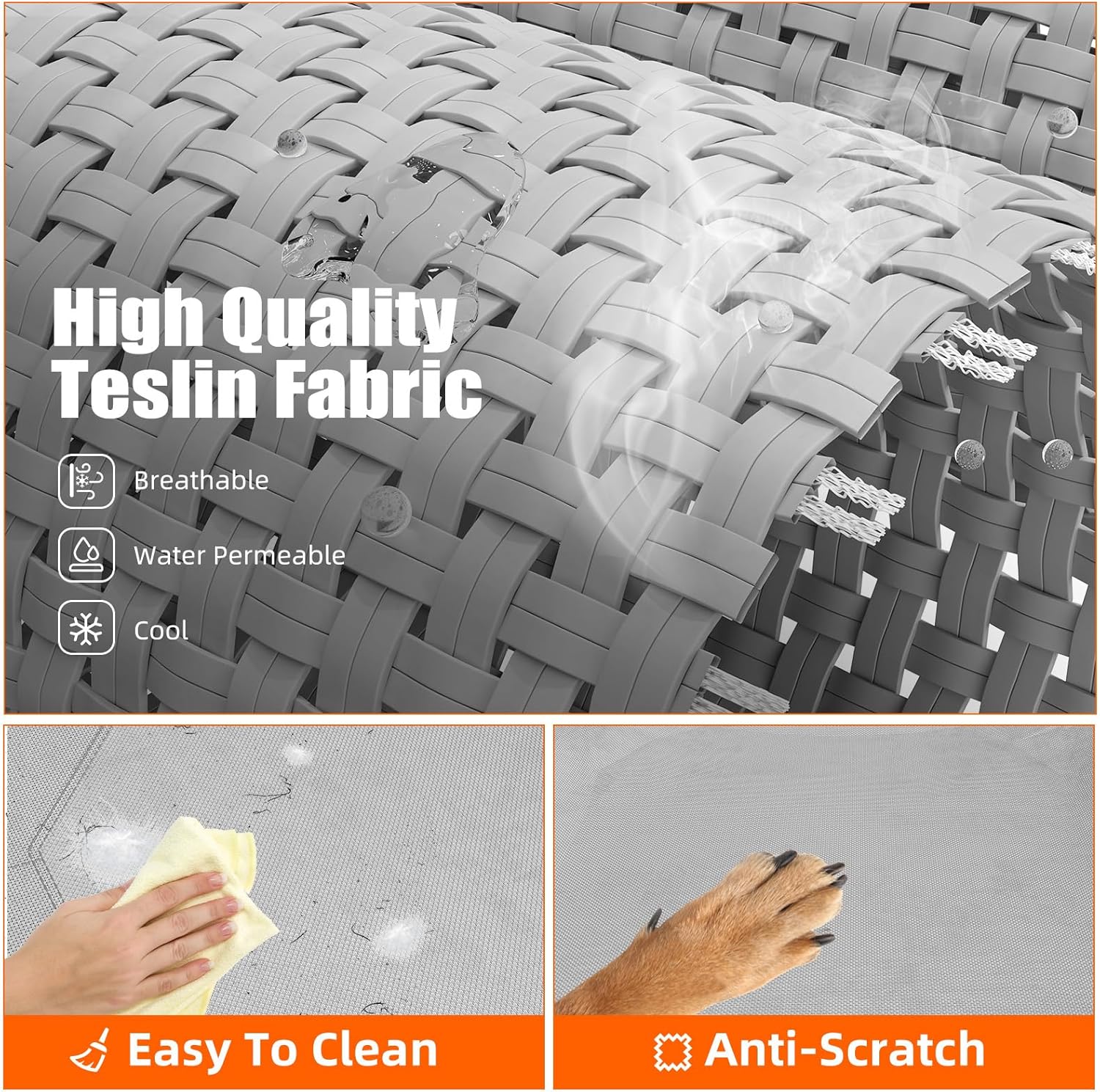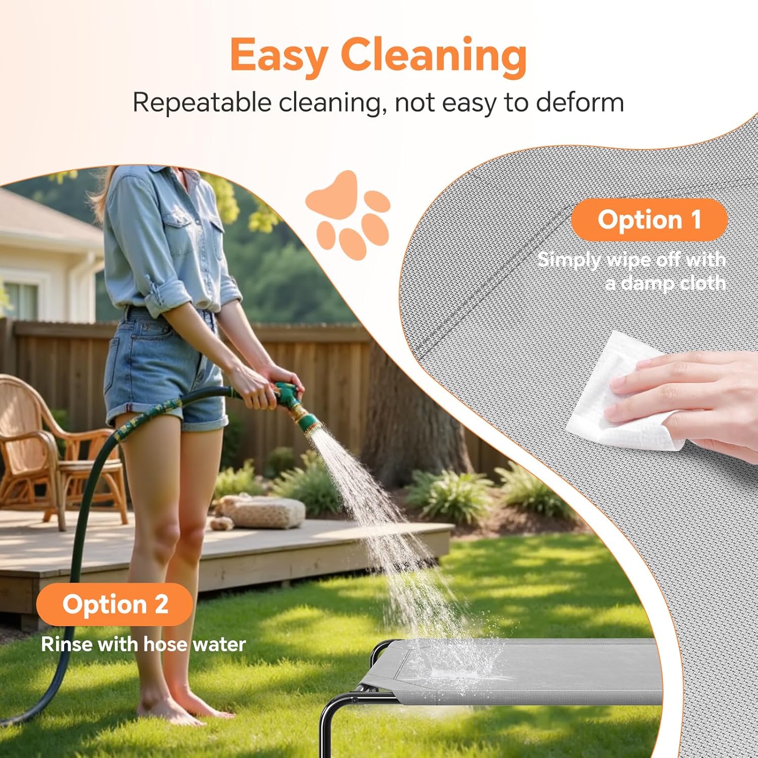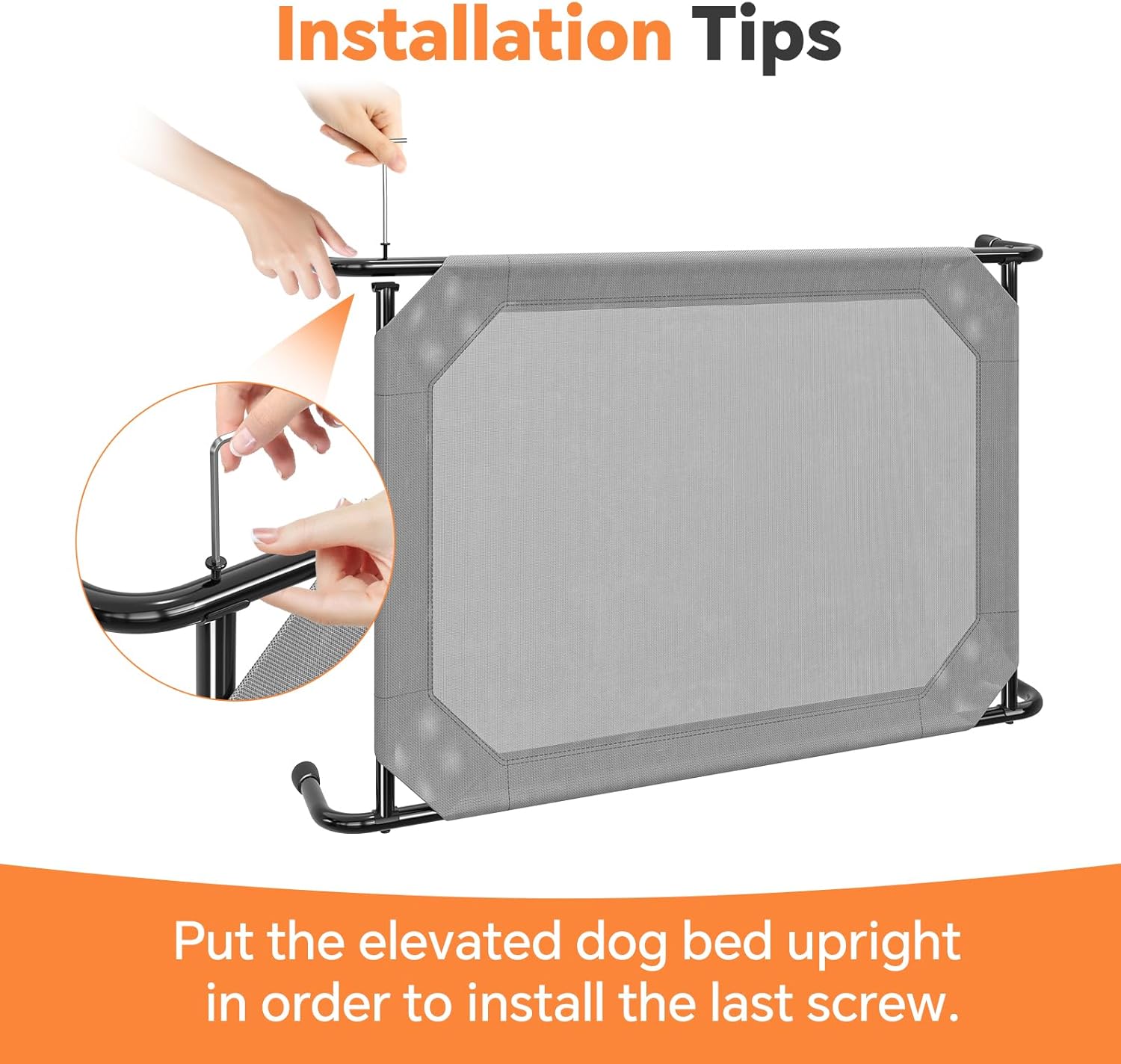 【Strong & Durable】Constructed with upgraded 1-inch diameter tubing, this dog cot bed supports up to 200 pounds. To ensure sturdiness and longevity, assembly requires physical support and is best performed by two adults.