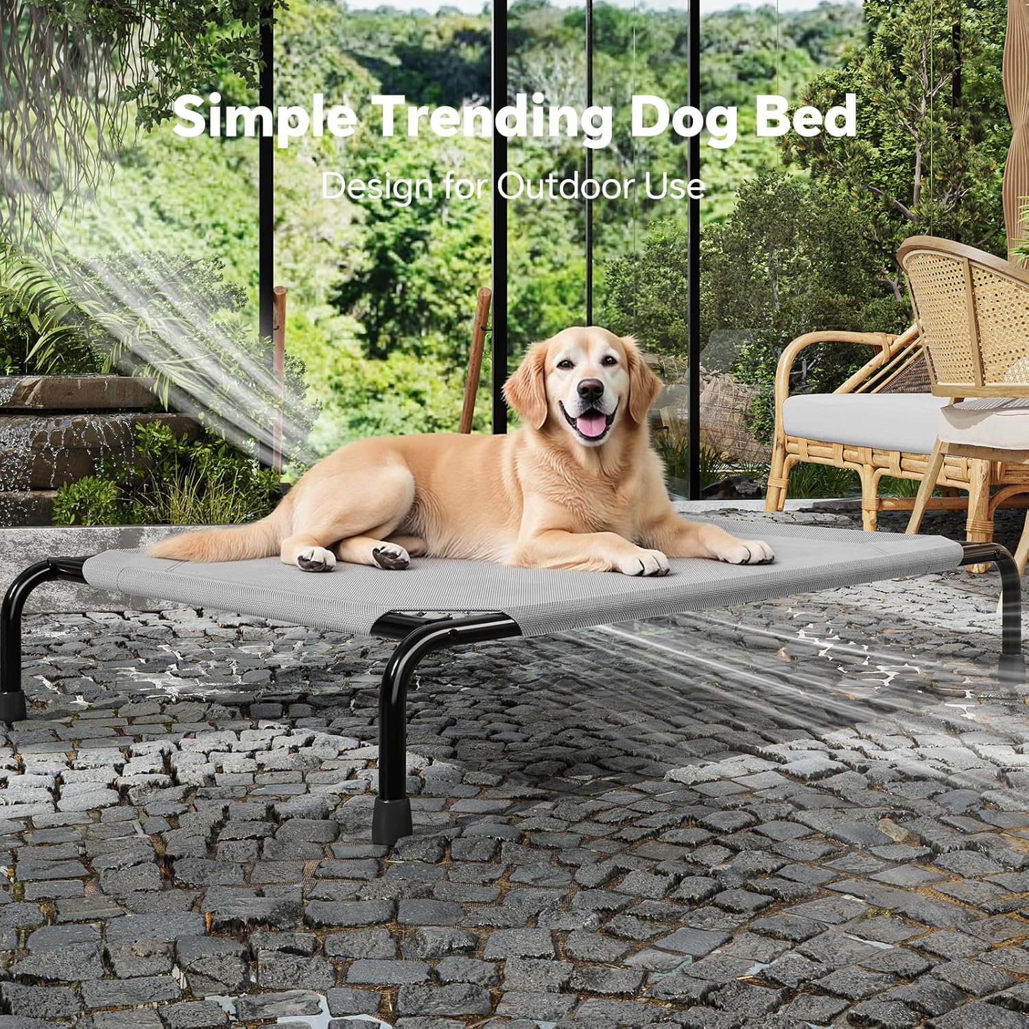Simple Trending Raised Dog Bed for Large Dogs, Waterproof XL Dog Cot, Outdoor Cooling Elevated Pet Bed Load 200lb, 47.75″ x 30.5″, Grey