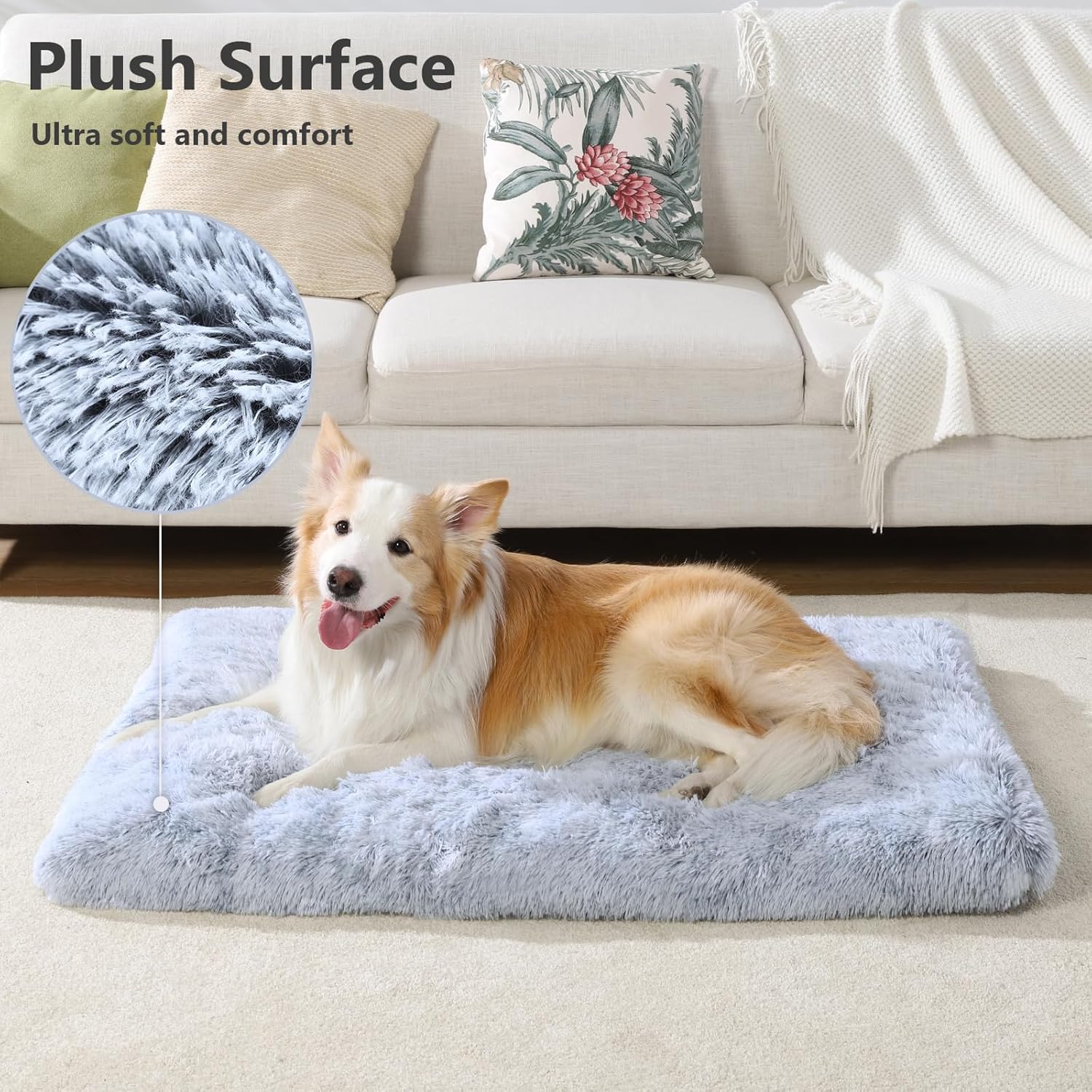Vonabem Large Dog Bed Crate Pad 36 inch, Washable Pet Beds Medium Small Sized Dogs, Deluxe Plush Warm Anti-Slip Puppy Mats for Sleeping, Soft Kennel Pads 35 * 23 inch Grey