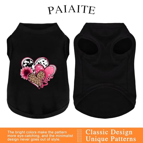 Discover Cozy Cotton Canine Wear: Soft, Lightweight, and Breathable Dog Shirt Vest with Eye-Catching Graphics (Hearts and Love), Keeping Your Furry Friend Comfy! Black S
