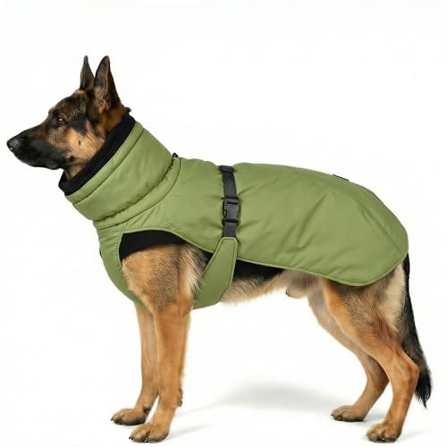 Dog Winter Coat, Warm Puffer Jacket with Fur-Safe Buckle & Leash Hole for Cold Weather, Water-Repellent Snow Vest, Breathable Thermal Apparel for Hiking & Active Dogs (Green, XX-Large)