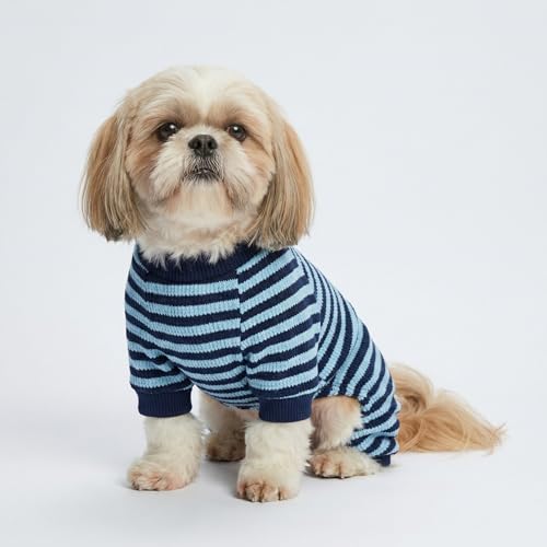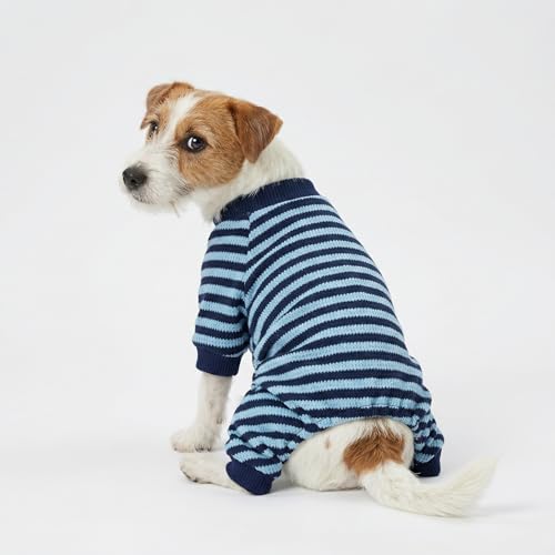 Four-legged sleepwear features a classic blue stripe design and snug ribbed cuffs, providing a comfortable, protective, and stylish fit for your doggie.