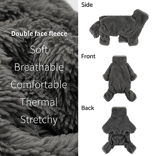 Fitwarm Dog Fleece Pajamas, Dog Winter Clothes for Small Dogs Boy Girl, Pet Jumpsuit, Doggy Onesie with Feet, Dark Grey, Medium