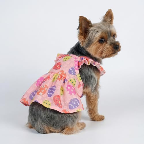 Fitwarm Easter Egg Dog Dress, Holiday Dog Clothes for Small Dogs Girl, Pet Easter Outfit, Pink, Yellow, Purple, Large