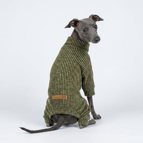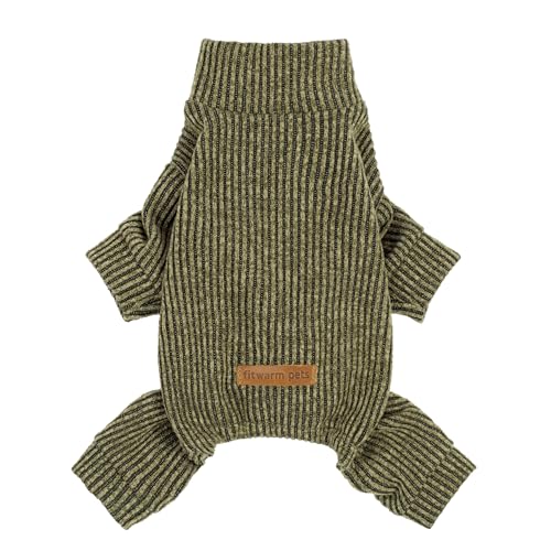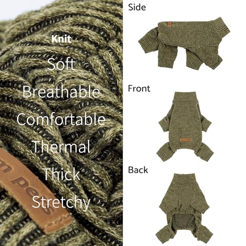 Fitwarm Mock Neck Knited Dog Pajamas, Warm Winter Clothes for Small Dogs Boy Girl, Pet Apparel, Olive Green, Small