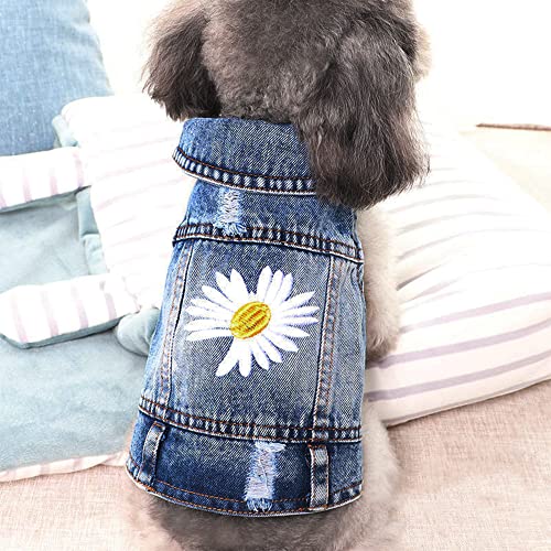 FASHION STYLE: Use soft jean fabric, vintage Jeans Jacket style with daisy decor design, lapel collar, button closure design so that your pet can easily put on and take off, what’s more, the clothes for dogs will be very fashionable!