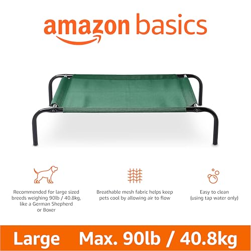 Amazon Basics Cooling Breathable Elevated Dog Bed with Metal Frame for Large Dogs, 51″ x 31″ x 8″, Green, Easy to Assemble