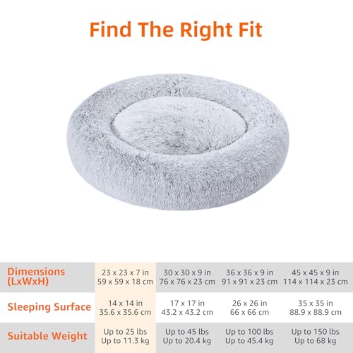 Amazon Basics Washable Donut Pet Bolster Faux Fur Bed with Removable Cover, Anti-Slip Bottom for Dog, Grey, 23″ x 23″