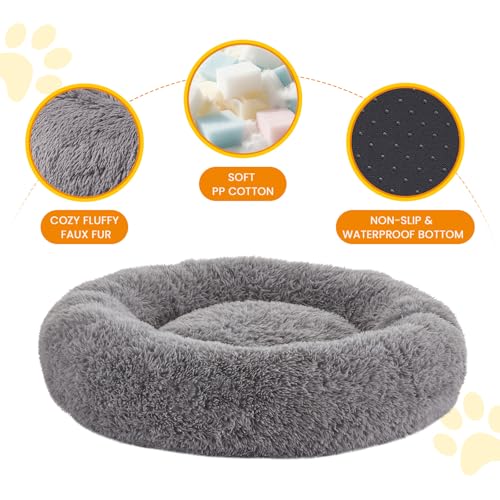 Calming Dog Beds for Large Dogs, Faux Fur Donut Cuddler Dog Bed, Round Fluffy Pillow, Washable Pet Bed for Dogs Up to 80Lbs, 36inch