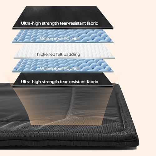 Double Waterproof Protection: This tough dog bed features an advanced dual-layer waterproof design—an extra interior barrier that blocks liquid from reaching the bottom. Even if accidents happen or water spills on the surface, the moisture stays locked out, keeping your floor, crate, or outdoor space completely dry. This protection not only prevents dampness but also keeps your dog’s resting area fresh, clean, and hygienic.
