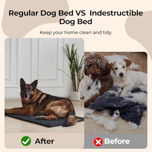 Chew Proof Dog Crate Pad – Indestructible Durable Dog Bed for Aggressive Chewers, Machine Washable & Waterproof Indoor Outdoor Tough Kennel Pad for Large Dogs (Large (28″x41″))