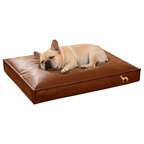 Dog Bed Medium Size Dog Orthopedic Beds for Small Dogs with Removable Washable PU Leather Cover Waterproof Brown 27.5×19.6×4inch