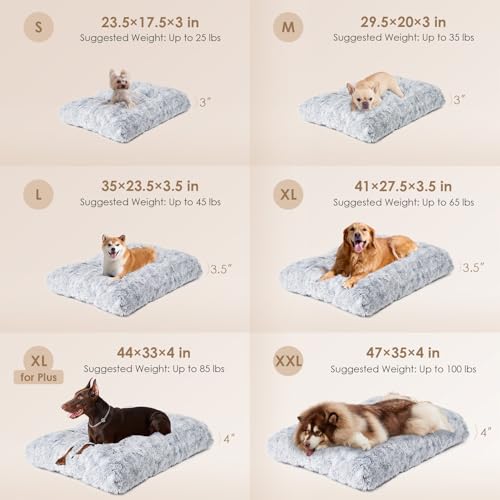 EHEYCIGA Fluffy Dog Crate Bed for Extra Large Dogs, Plush Faux Fur Pad, Calming Anti Anxiety XL Bed for Crate, Washable Soft Warm Dog Mat with Non-Slip Bottom, Grey