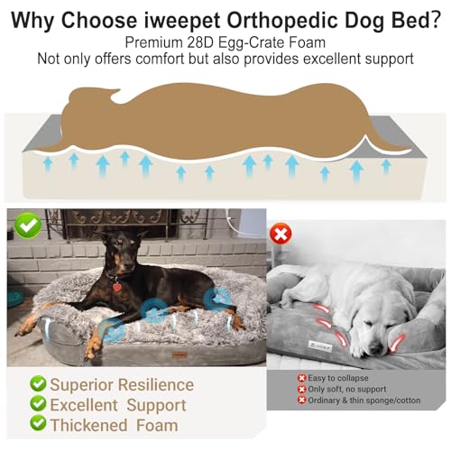 【Supportive Cushion with Thickened Egg-crate Foam】: Iweepet dog sofa bed has upgraded the thickness of the cushion, featuring 28D high-density egg crate memory foam with a 3.7-inch thick base. This enhancement significantly boosts both comfort and support, ensuring your dog experiences ultimate coziness and relaxation while sleeping. Your furry friend will love the superior comfort,and get a dreamy sleep.