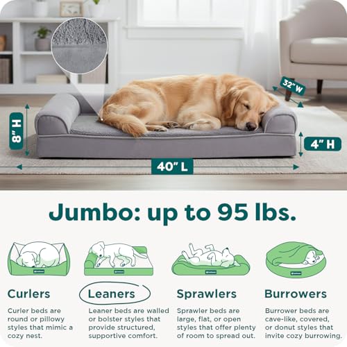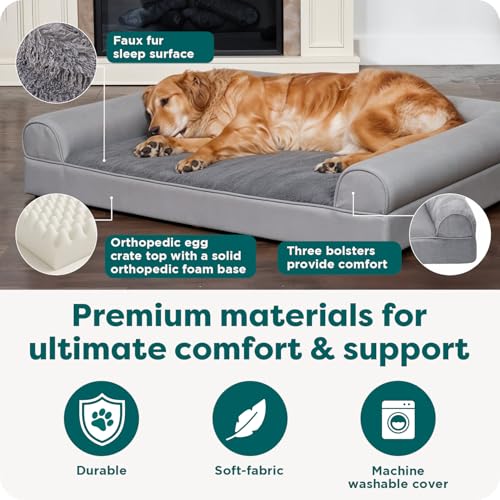 Furhaven Orthopedic Dog Bed for Large Dogs w/ Removable Bolsters & Washable Cover, For Dogs Up to 95 lbs – Plush & Suede Sofa – Gray, Jumbo/XL