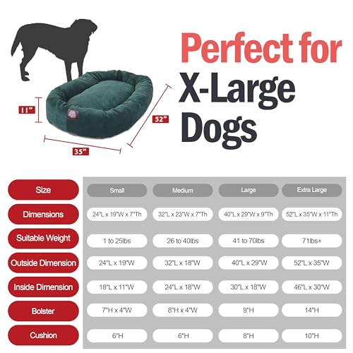Majestic Pet 52 Inch Micro Velvet Calming Dog Bed Washable – Cozy Soft Round Dog Bed with Spine for Head Support – Fluffy Donut Dog Bed 52x35x11 (inch) – Round Pet Bed X- Large – Marine