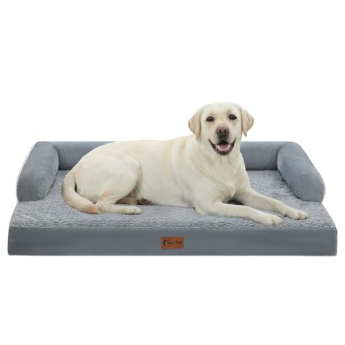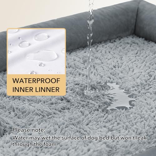 Orthopedic Dog Beds for Extra Large Dogs, Waterproof Egg Crate Foam XL Dog Bed with Sides 45x35Inch, Big Dogs Couch Beds with Removable Washable Cover and Nonskid Bottom, Grey