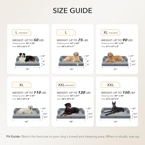 Multiple Options for Needs: Available in multiple sizes to suit medium, large, and extra-large breeds and multiple colors to match your home. For detailed dimensions, please refer to the images. Please note that dog bed is vacuum-packed. After unboxing, allow up to 63 hours for it to fully expand to its original, plush shape.