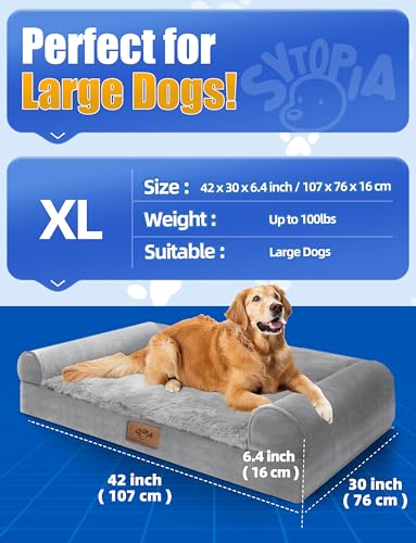 Sytopia Orthopedic Dog Bed for Large Dogs Washable, Chew Proof 42 Inch Extra Large Dog Bed with Washable Removable Cover and Anti-Slip Bottom – XL