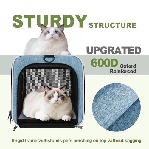 Cat Carrier 18 x 11 x 11 Top Loading Soft-Sided Pet Travel Bag Over 15lbs, Portable Small Dog Puppy Car Crate 10 lbs, Chihuahua Kennel Carry Case, Kitty Cloth Cage Medium Cat Under 25 Blue