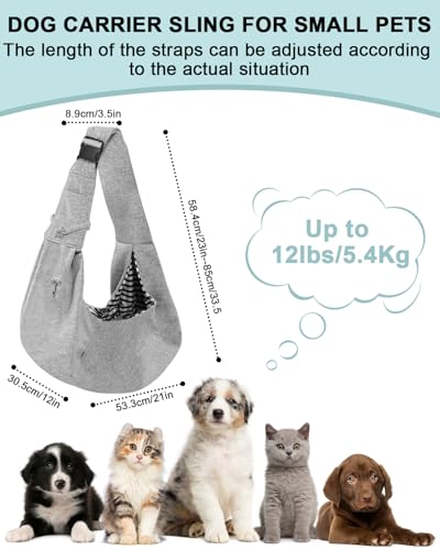 Dog Carrier Sling for Small Dogs and Cats(0 to 12 lbs), Puppy Sling Carrier with Adjustable Strap, Travel Safety Harness, Hands-Free Pet Carring Holder Travel Bag for Outdoor, Gray