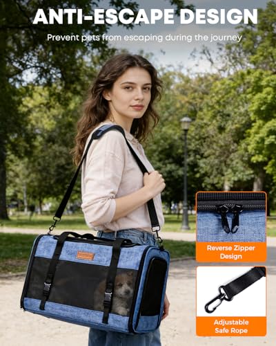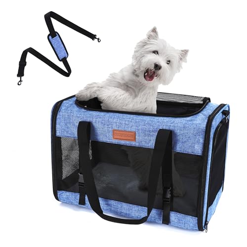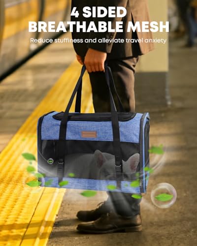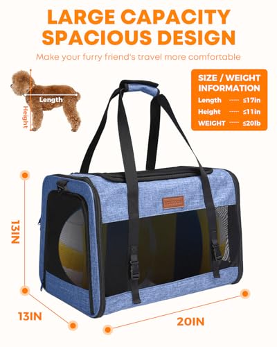 Large Cat Dog Carrier for Pet Up to 20 Lb – 20×13×13 in, Top & Side Entry, Foldable, Soft-Sided Pet Carrier with Ventilated Anti-Scratch Mesh & Car Seat Buckle for Car, Travel and Vet – Blue