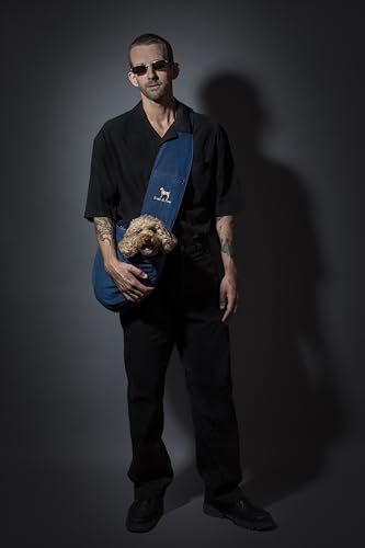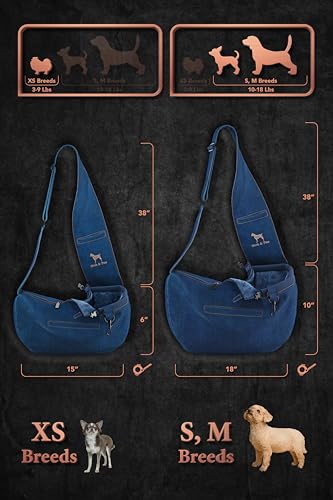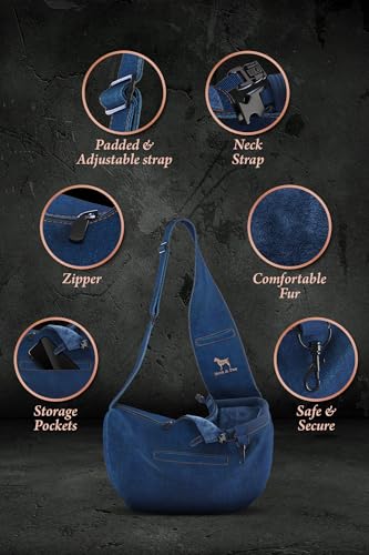 Noah & Paw Dog Sling Carrier for Small Dogs 5-18lb, Dog Sling for Small Dogs and Cats, Dog Carrier with Adjustable Padded Strap, Vegan Denim Lined with Fur, 3X Safety Features, Machine Washable