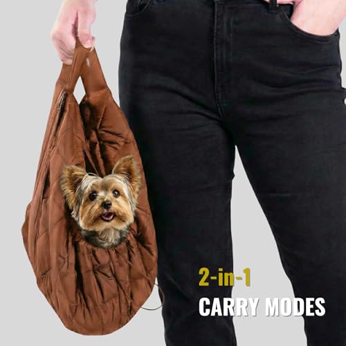 Small Dog Carrier Sling – Copper Brown Hands‑Free 2‑in‑1 Cross‑Body & Handheld Pet Sling for Small Toy Dogs up to 3-8 lb, Parachute‑Grade Rip‑Stop Nylon, Padded Strap & Safety Tether