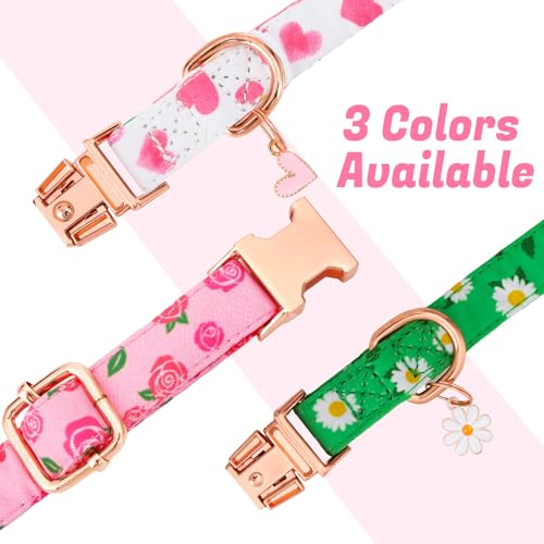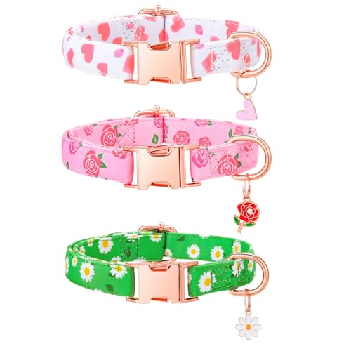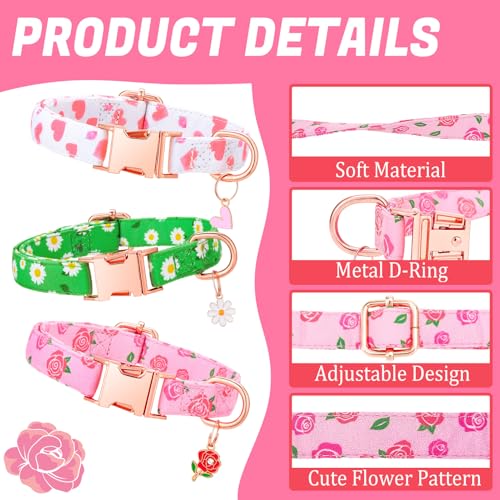 3 Pack Floral Dog Collars for Small Dogs Pink Dog Collar with Flower Pendant for Girl Female Dogs Adjustable Puppy Collars Pet Collar (9-14.5 inch)