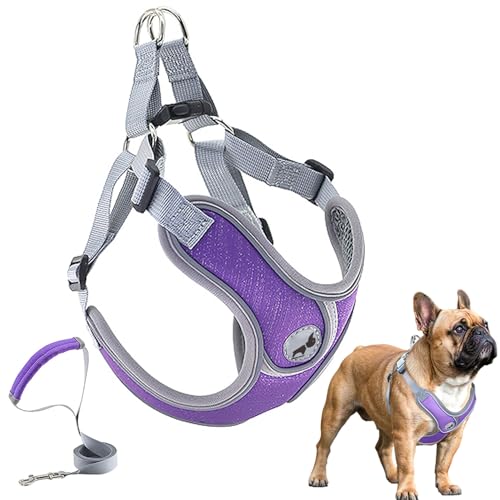 Dog Harness with Leash Set, Adjustable Step in Collars Harness with Breathable Padded Vest for Medium Dogs Training and Running (M, Purple)