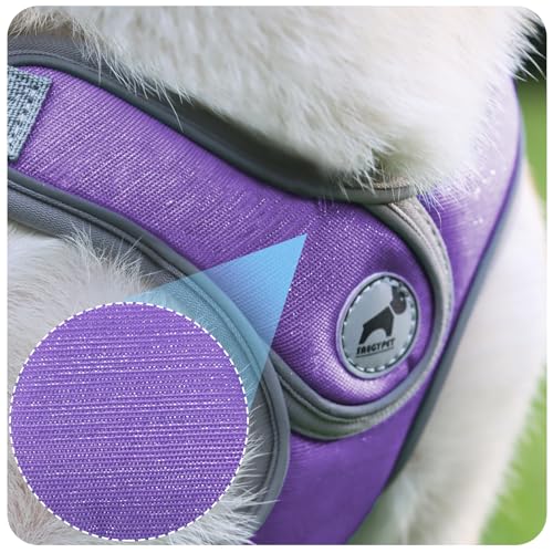 [Comfortable, Breathable, Lightweight] Harness is made of air-mesh, which is ultra thin, soft, comfortable and breathable, will not harm the dog’s skin and hair. It has extremely high durability, tensile resistance, tear resistance and fusion resistance. It has the characteristics of moisture absorption and perspiration, creating dryness, giving pets an extraordinary wearing experience.