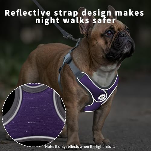 [Easy to Put On & Take Off] – The dog harness with simple and Step-in design and quick snap buckles which make it easy to put on and take off. You just need to open the quick-release buckle, let your dog’s head and front legs through the harness, then lock the buckle, and adjust the harness to the fittest size, ensuring that your dog will not easily escape, finished! This puppy harness is easy to control and ideal for walking, jogging, hiking, training, etc.