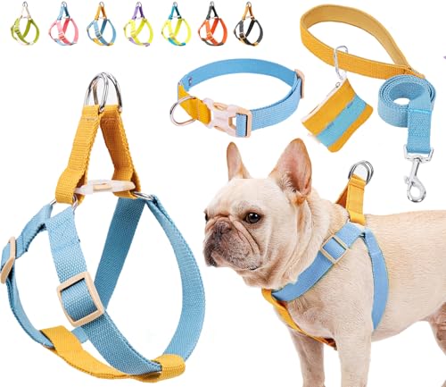 No Pull Dog Harness and Leash Set, Dog Collar, Step in Dog Halter Harness with Poop Bag Holder, Adjustable Lightweight Cotton Straps Suitable for Small Medium Large Dogs Outdoor Walking Running Hiking