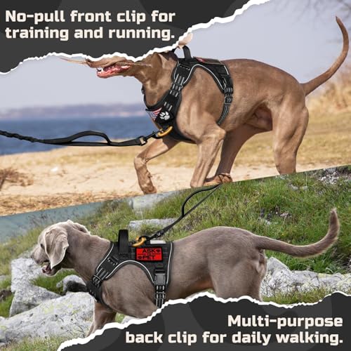 Easy to Adjust & Wear: The tactical dog harness features 4 convenient adjustment points (2 Shoulder, 2 Chest) to ensure a snug fit for dogs of all sizes. Two quick-release buckles are designed not only for easy on and off, but also can withstand great pulling force, providing security for training, hunting, walking, and any other occasions