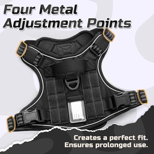 rabbitgoo Tactical Dog Harness for Large Dogs, No Pull Military Service Vest with Handle & Molle, Easy Control for Training Walking, Adjustable Reflective Straps, Black, L