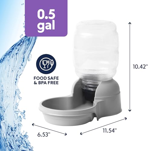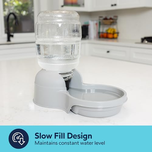 AUTOMATIC REFILL: The cat dog water bowl dispenser slowly dispenses water to prolong time between refills Perfect for pet parents with busy lifestyles Holds 0.5 gallons to accommodate large pets