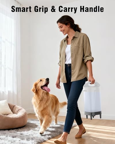 【Ergonomic Handle for Easy Carrying】Equipped with a strong built-in handle, the dispenser is simple to lift, refill, and reposition even when full. The practical design minimizes the risk of spills and strain, making it convenient for families, seniors, and households managing large-capacity pet supplies