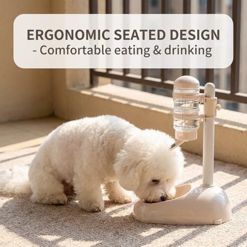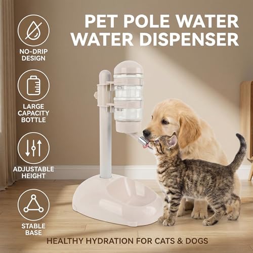 Denash Pet Standing Water Dispenser Feeder, 500ml Dog Water Feeder Bottle Adjustable Raised Pet Food Bowl for Dogs Detachable Bottles Easy Cleaning (Beige)