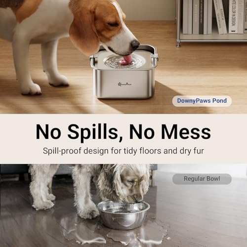No Spills, No Mess: Say goodbye to water spills and messy floors with DownyPaws dog water bowl no spill. The adjustable stainless steel float and silicone plugs on both sides minimize splashing and keep floors dry. Perfect for sloppy drinkers