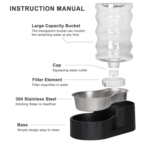 【Easy to Clean】The split design makes it easy to disassemble the various parts of this automatic water dispenser, the bucket and base can be easily separated, and each corner can be cleaned. It is recommended to clean directly with a paper towel or cloth with water, you can use detergent once a week to clean, too frequent use of detergent will corrode the bowl.