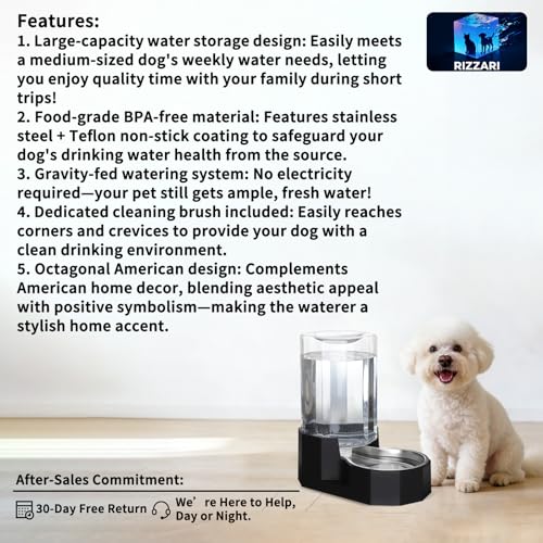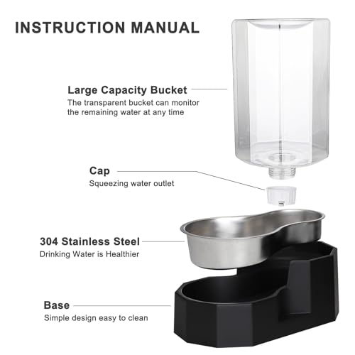 Large Capacity:This automatic pet water dispenser provides 7L large capacity (approx. 1.85 gallon gravity water bowl), perfect for medium to large dogs or multiple cat households. The gravity-fed system automatically refills water, ensuring fresh, clean water supply while reducing refill frequency. Ideal for busy pet owners during work trips or vacations, eliminating worries about water shortage for your indoor pets.