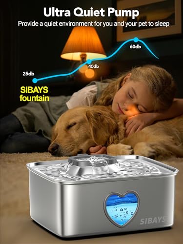 Easy to Clean: The deatchable design of dog water fountain for large dogs makes cleaning a breeze, no hidden corners to trap dirt. For your pet’s health, we recommend replacing the filter and sponge every 1-3 weeks. You can search “L05” in SIBAYS store, or search “B0DXPPGVTZ” on Amazon to buy the replacement filters. And search “P05” in SIBAYS store or search “B0F6D1YS8C” on Amazon to buy the replacement pump.