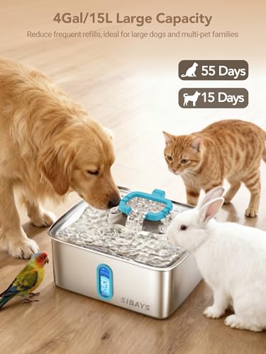 4Gal/15L Extra Large Capacity: This dog water fountain for large dogs provides enough water for large dogs or multi-pet household for up to 15 days. The cat fountains for drinking hleps you reduce the frequency of refills, saving your time and effort.